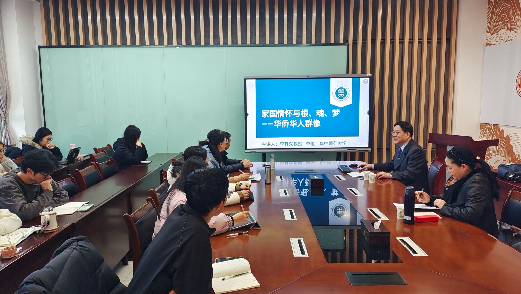 11月25日下午,华中师范大学国际移民与海外华人研究中心李其荣教授在suncitygroup太阳集团三楼会议室,举办了题为《家国情怀与根、魂、梦——华侨华人群像》的学术讲座。本次讲座由suncitygroup太阳集团秦艳峰副教授主持,学院部分教师与在校研究生到场聆听。